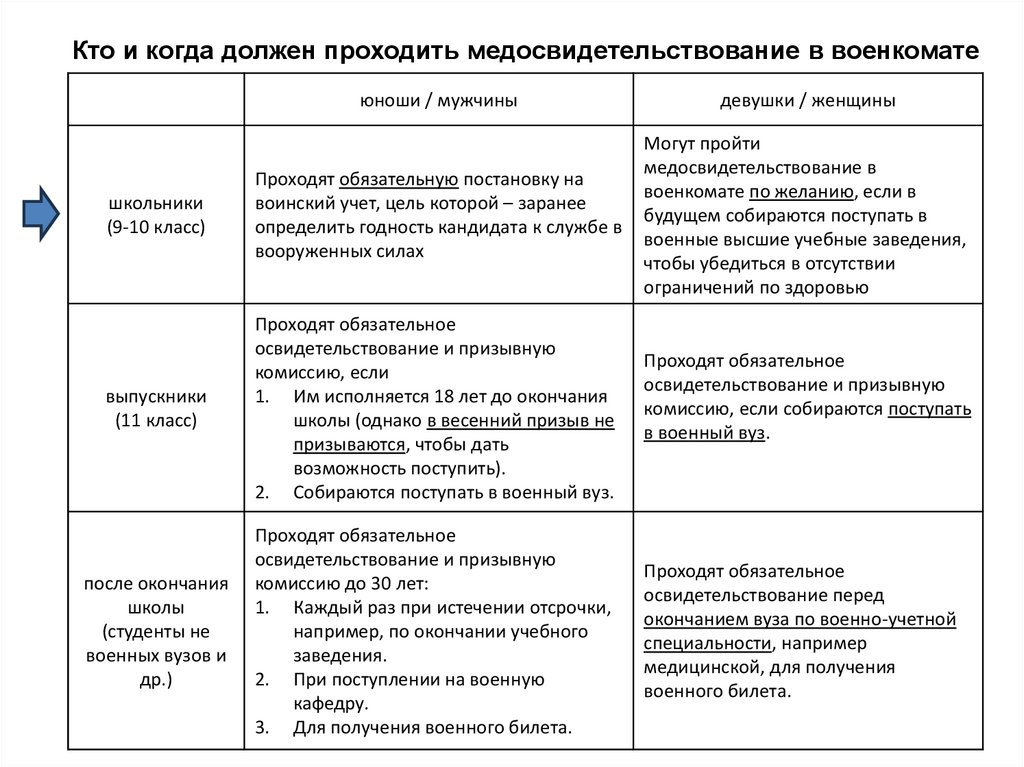 Кто и когда должен проходить медосвидетельствование в военкоматеюноши / мужчины