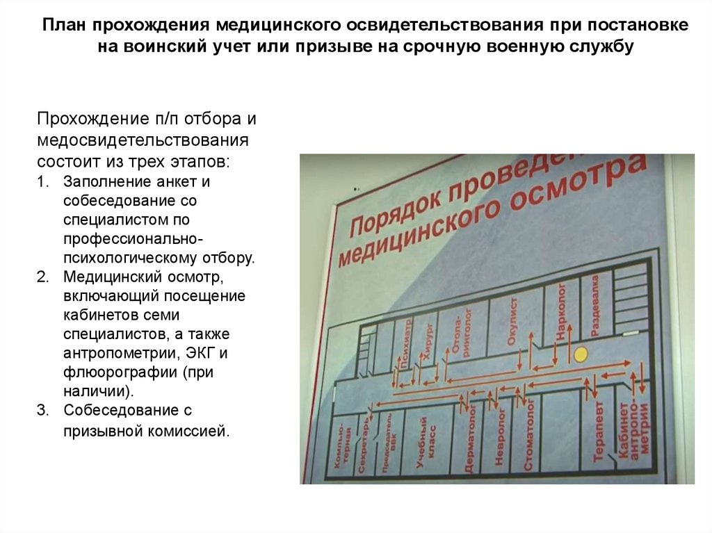 План прохождения медицинского освидетельствования при постановкена воинский учет или призыве на срочную военную службу
