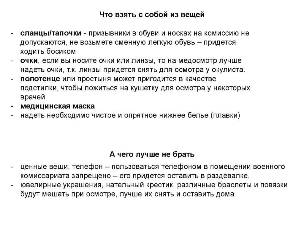 не забывать в военкомате документы, личные вещи и не забирать чужие!