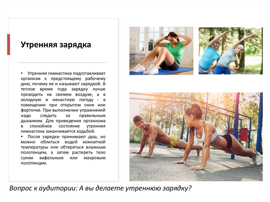 Вопрос к аудитории: А вы делаете утреннюю зарядку?