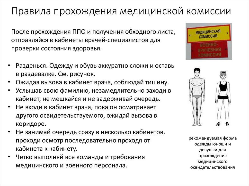 План прохождения медицинского освидетельствования при постановкена воинский учет или призыве на срочную военную службу