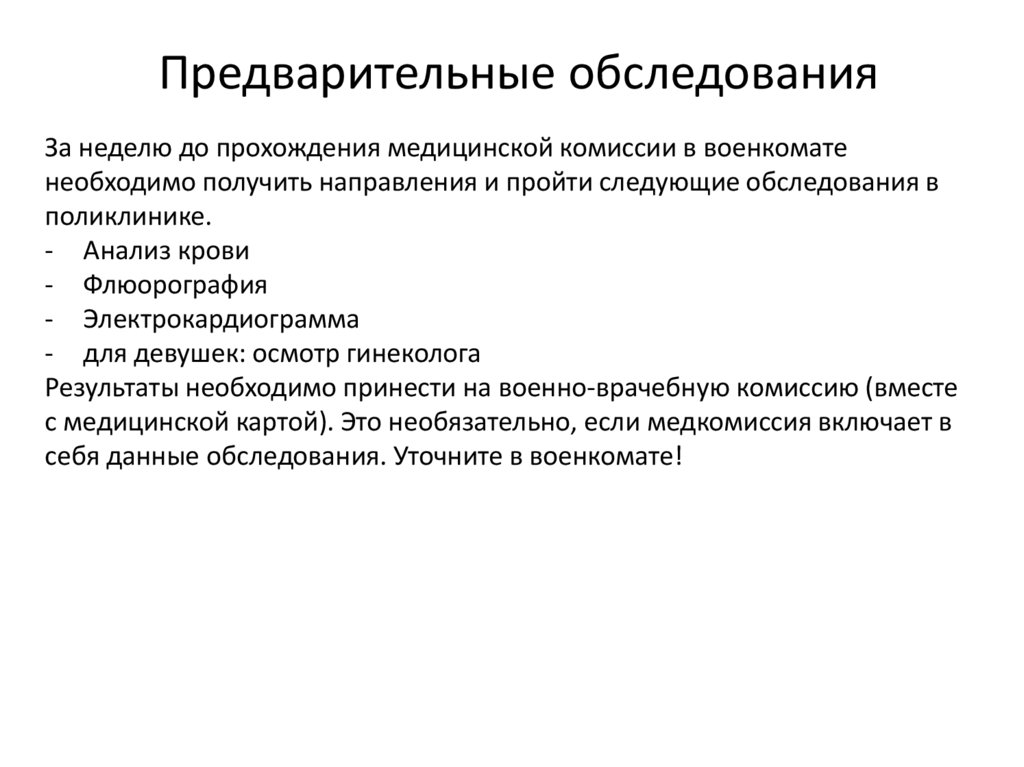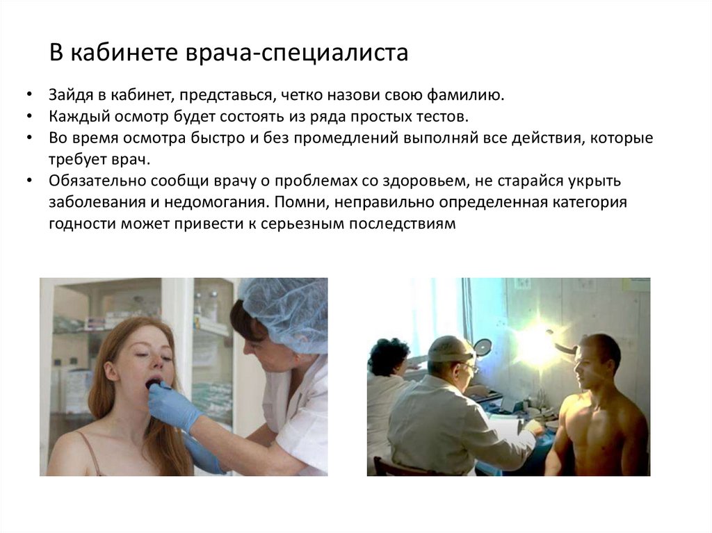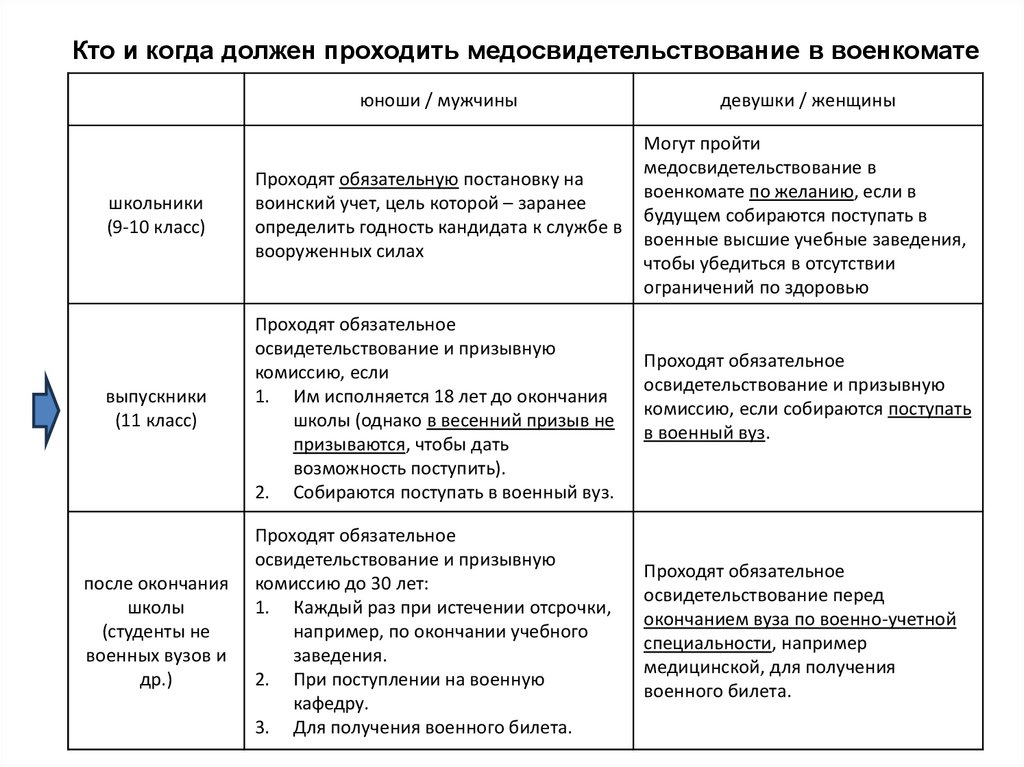 Кто и когда должен проходить медосвидетельствование в военкоматеюноши / мужчины