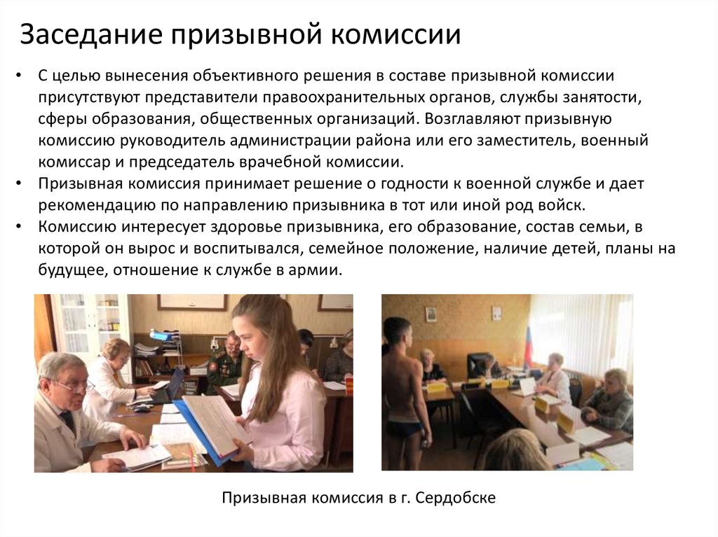 Заседание призывной комиссии• С целью вынесения объективного решения в составе призывной комиссии