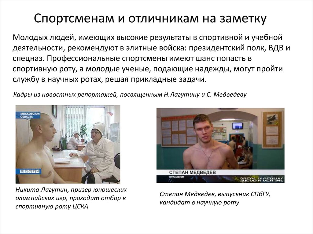 спортивную роту, а молодые ученые, подающие надежды, могут пройти