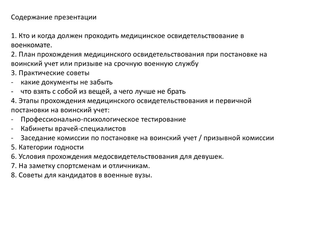 Содержание презентации1. Кто и когда должен проходить медицинское освидетельствование в
