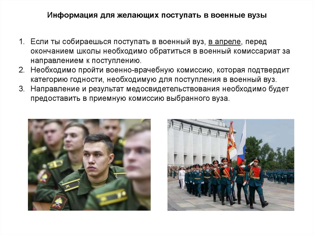 • если вы оканчиваете школу и собираетесь поступать в военный вуз, пройти