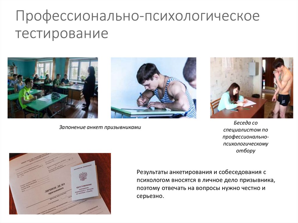 • Комиссию интересует здоровье призывника, его образование, состав семьи, в