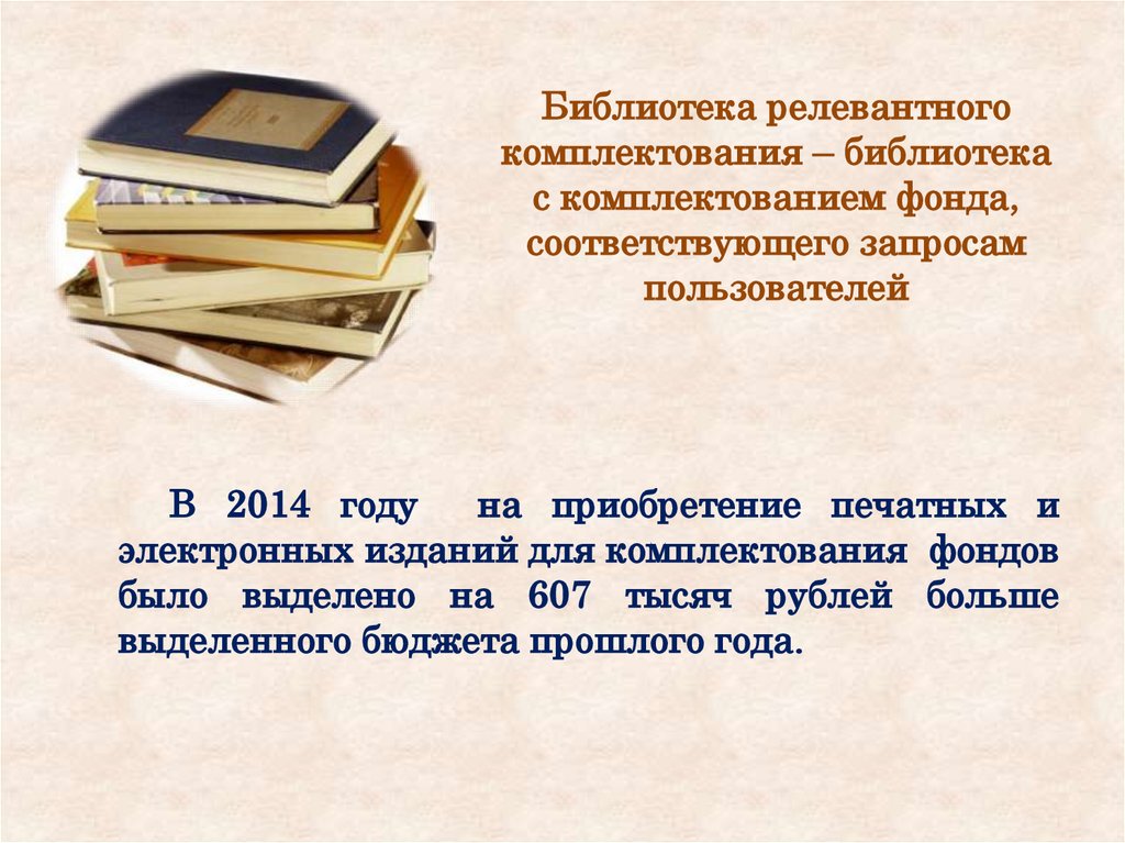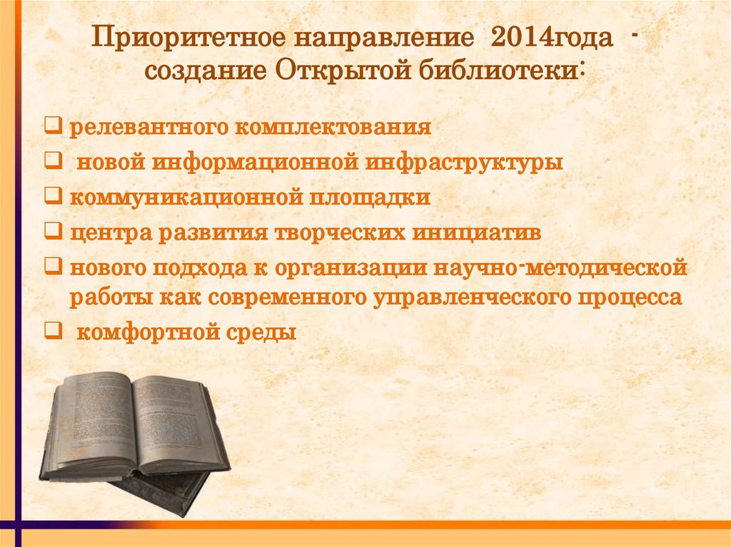 Приоритетное направление 2014года создание Открытой библиотеки:релевантного комплектования