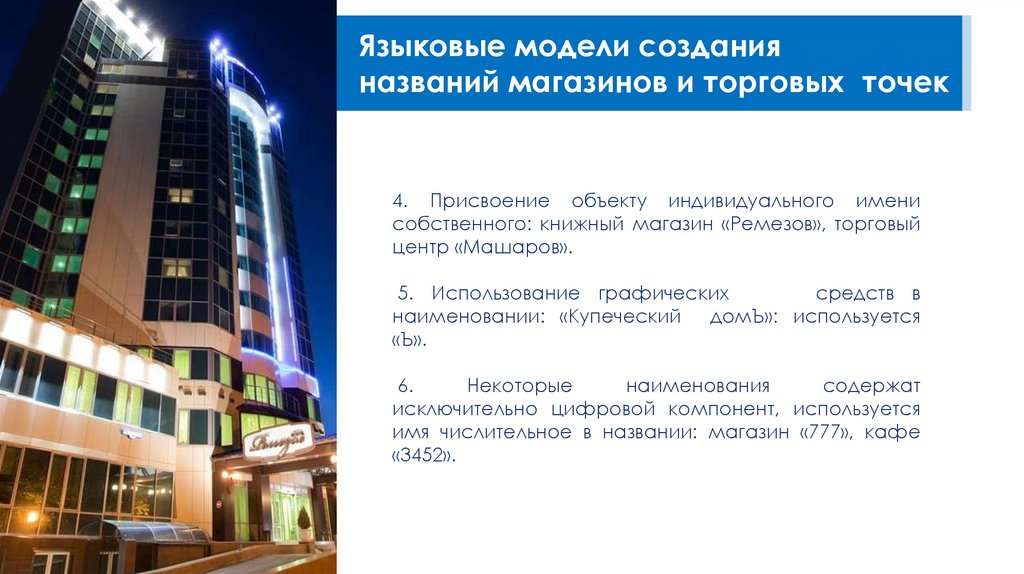 Языковые модели созданияназваний магазинов и торговых точек