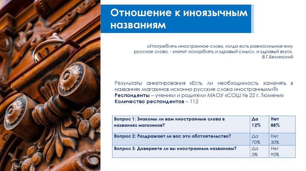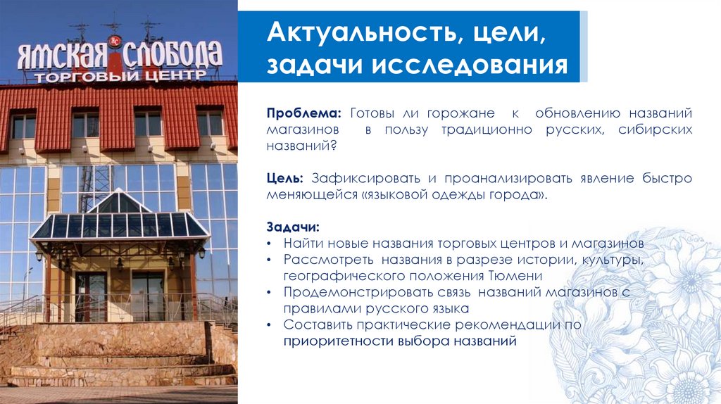 Языковой портрет города Тюмени в названиях магазинов