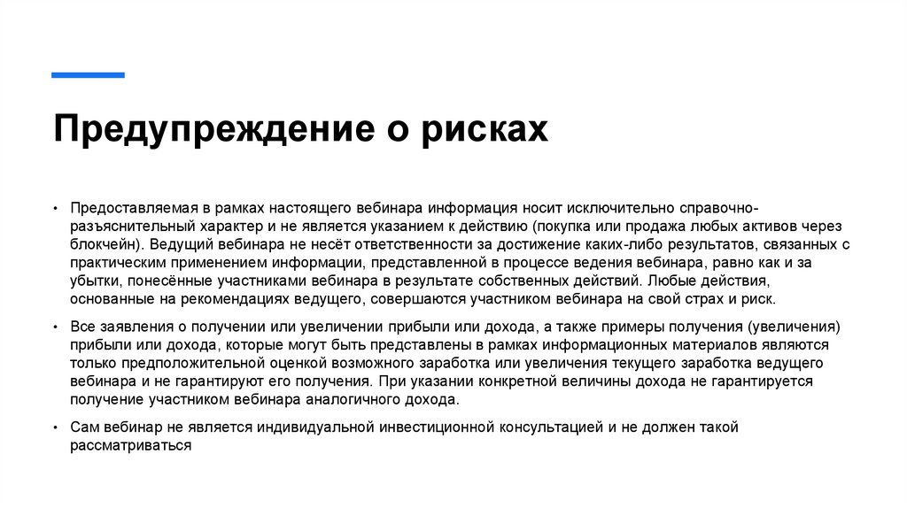 блокчейн). Ведущий вебинара не несёт ответственности за достижение каких-либо результатов, связанных с