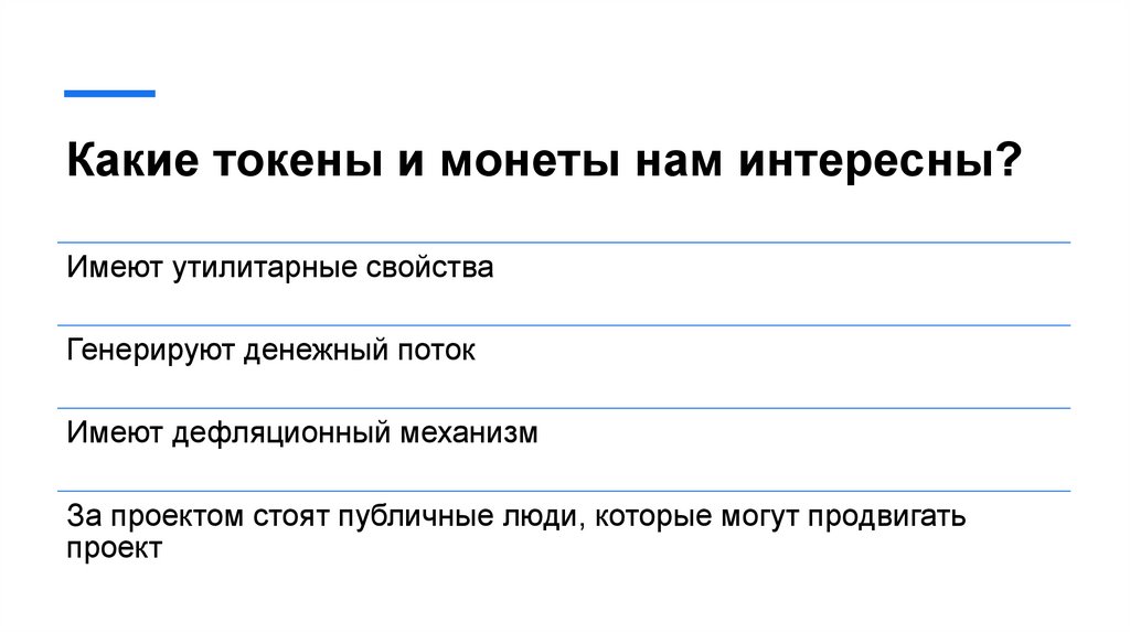 Какие токены и монеты нам интересны?Имеют утилитарные свойства