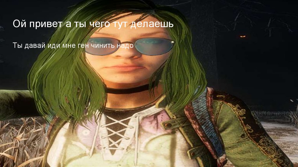 Ой привет а ты чего тут делаешьТы давай иди мне ген чинить надо