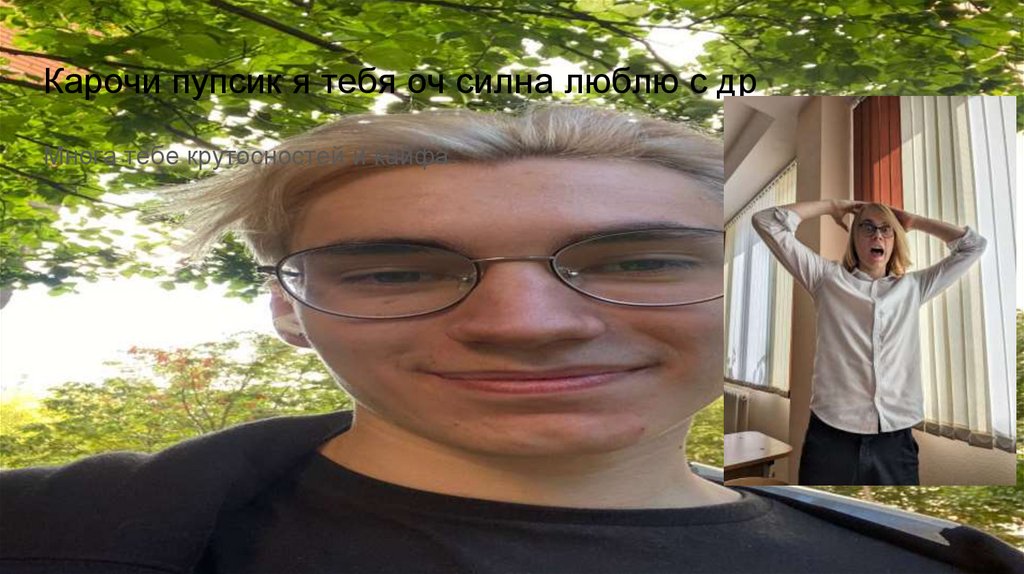 Карочи пупсик я тебя оч силна люблю с дрМнога тебе крутосностей и кайфа