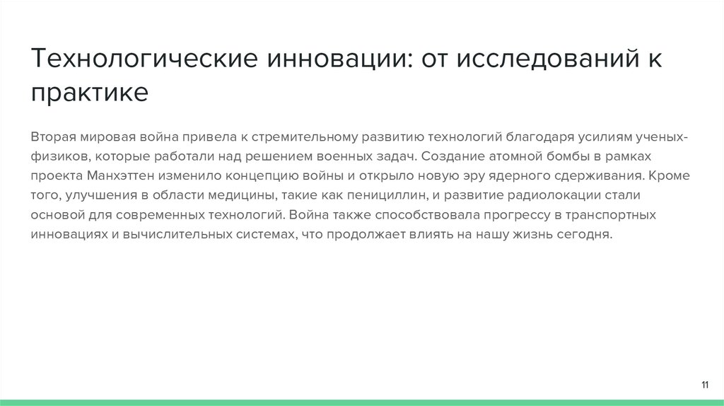 основой для современных технологий. Война также способствовала прогрессу в транспортных