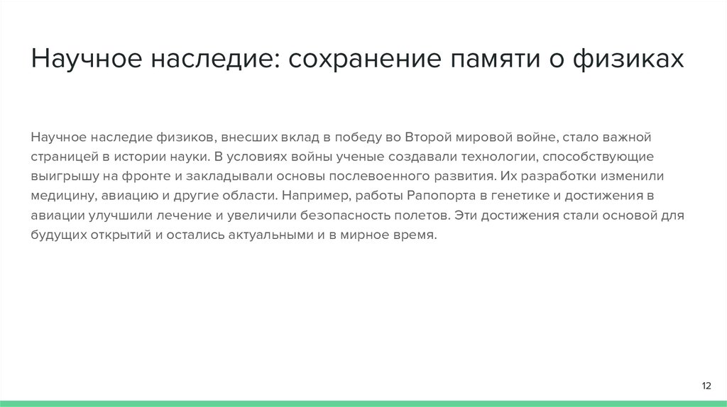 Научное наследие: сохранение памяти о физикахНаучное наследие физиков, внесших вклад в победу во Второй мировой войне, стало важной