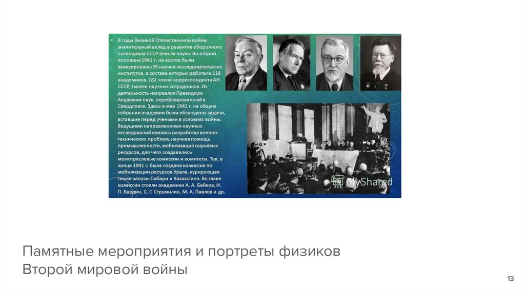 Памятные мероприятия и портреты физиковВторой мировой войны
