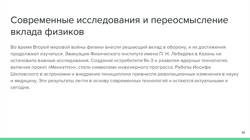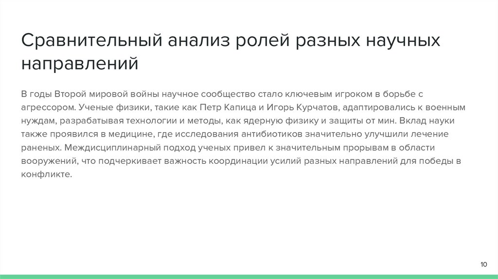 участвовавших в войне. 4. Сравнить роль физиков с другими научными направлениями.