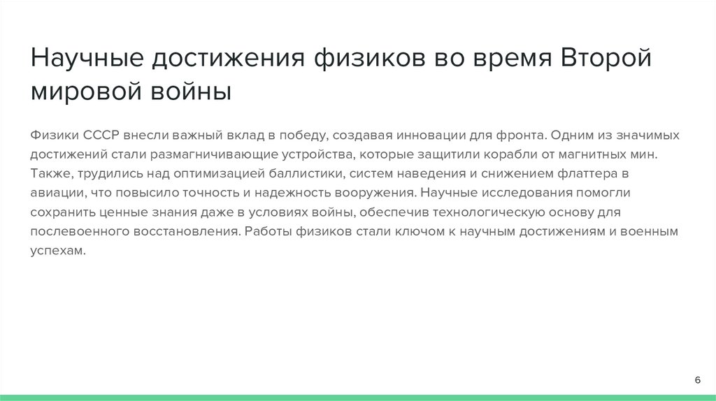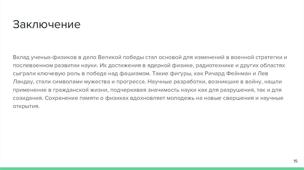 ЗаключениеВклад ученых-физиков в дело Великой победы стал основой для изменений в военной стратегии и