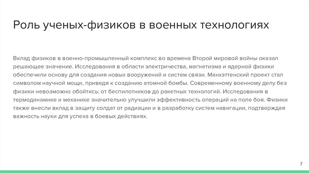 достижении военного превосходства. Наша работа акцентирует внимание на вкладе физиков в