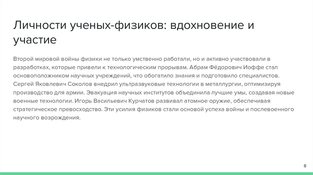 рассмотрим личные истории этих ученых и их влияние на науку и военные усилия. Задача популяризация научного наследия физиков и осознание их роли в истории.
