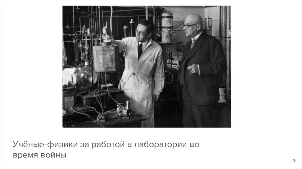 агрессором. Ученые физики, такие как Петр Капица и Игорь Курчатов, адаптировались к военным