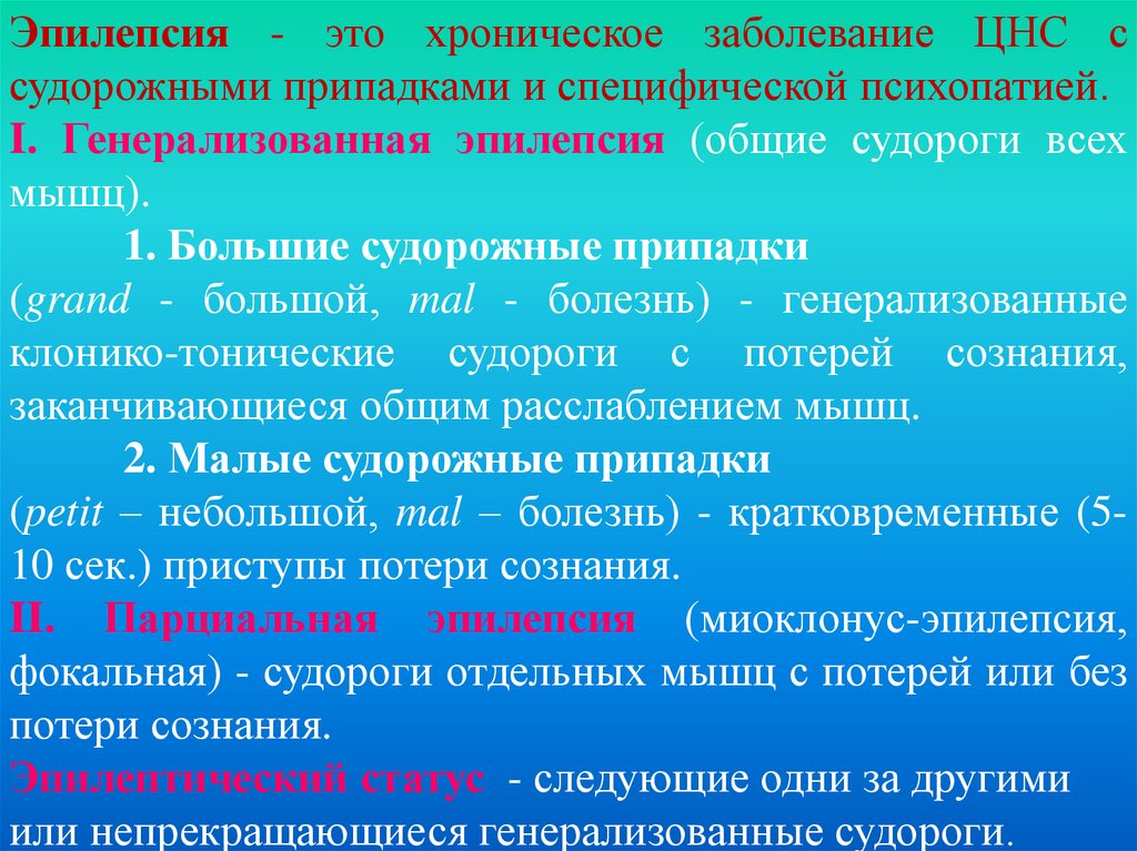 Эпилепсия - это хроническое заболевание ЦНС ссудорожными припадками и специфической психопатией.
