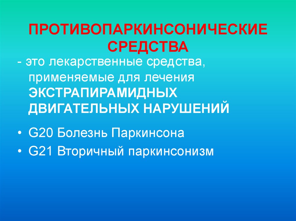 Противоэпилептические, противопаркинсонические средства (лекция 9)