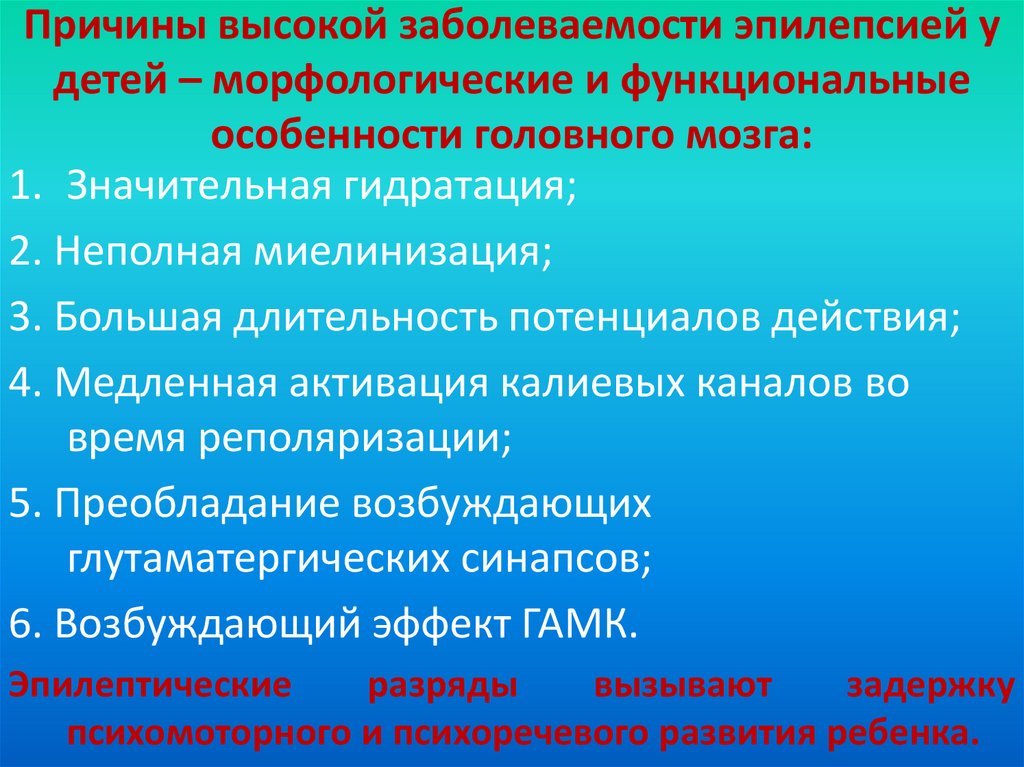 3. Причины высокой заболеваемости эпилепсией у детей – морфологические и функциональные особенности головного мозга: