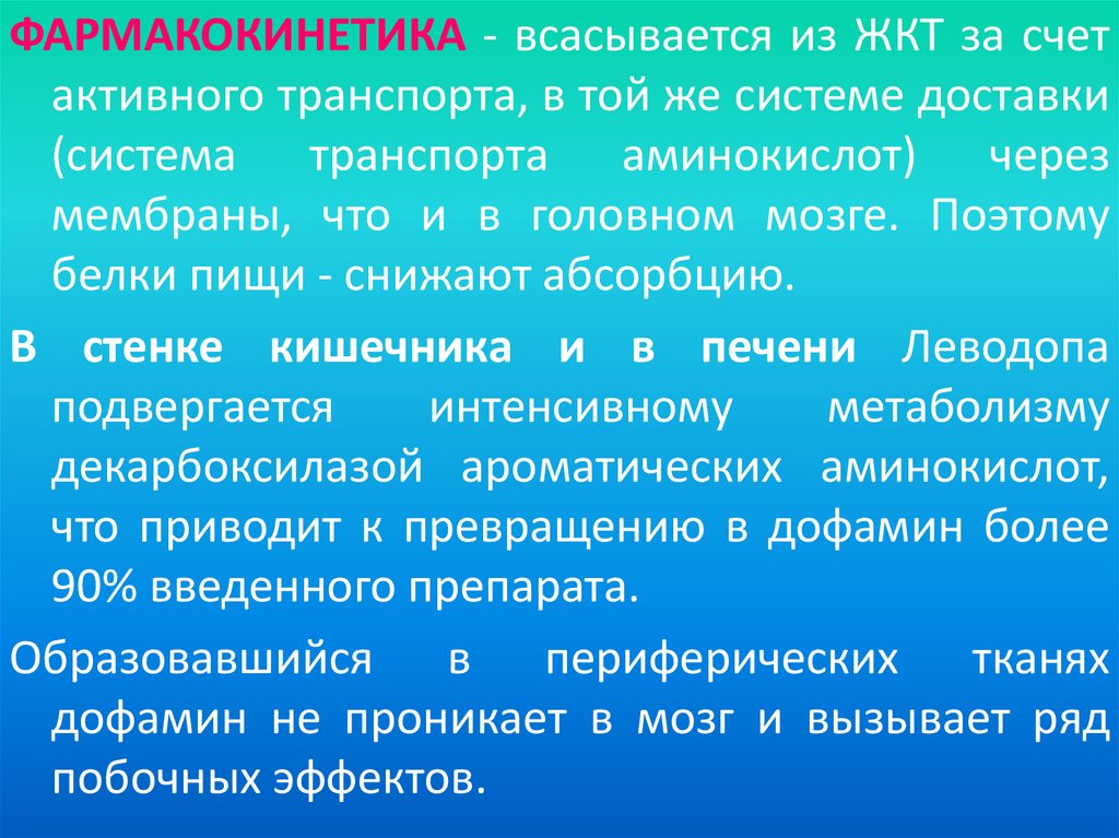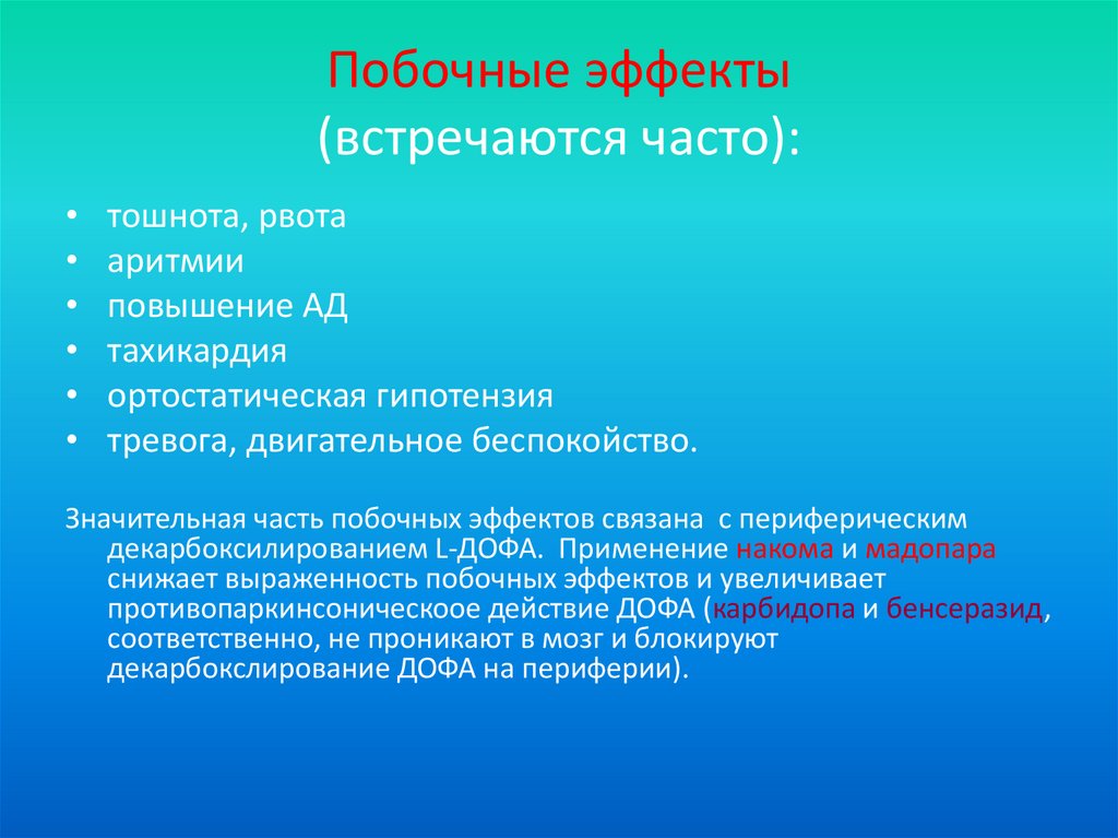 декарбоксилированием L-ДОФА. Применение накома и мадопара
