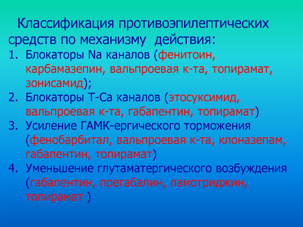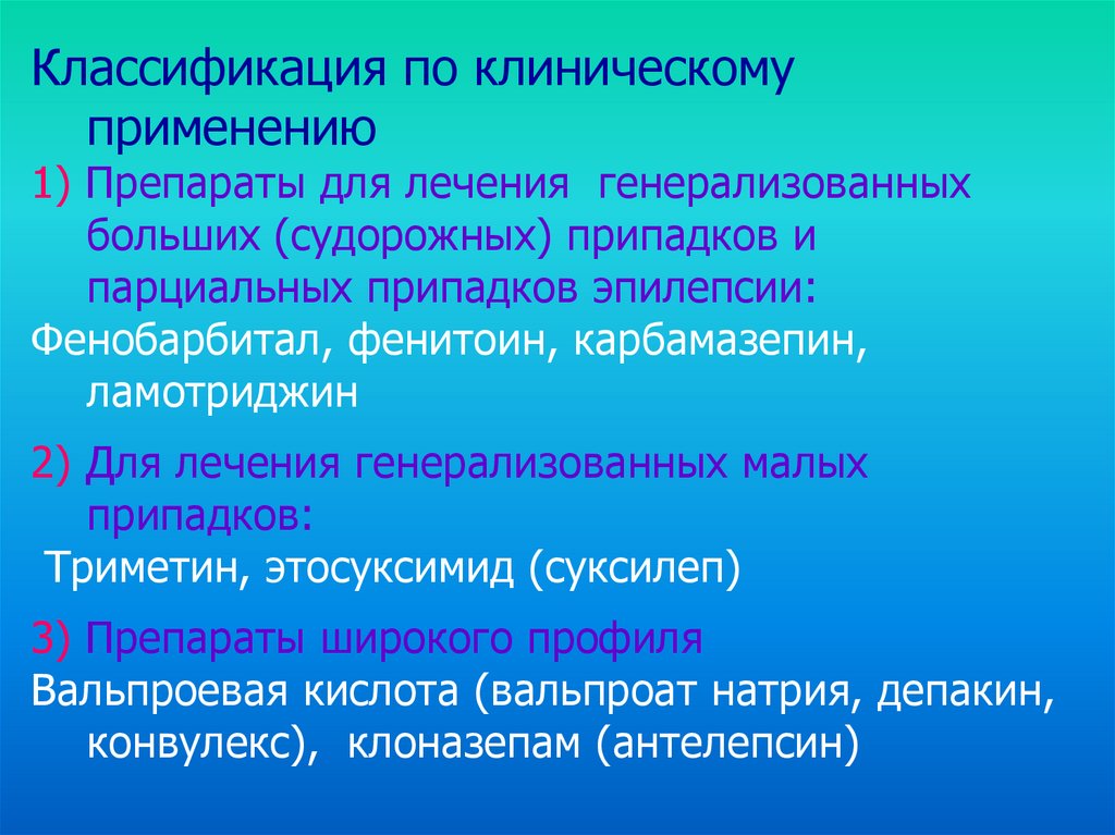 (фенобарбитал, вальпроевая к-та, клоназепам,