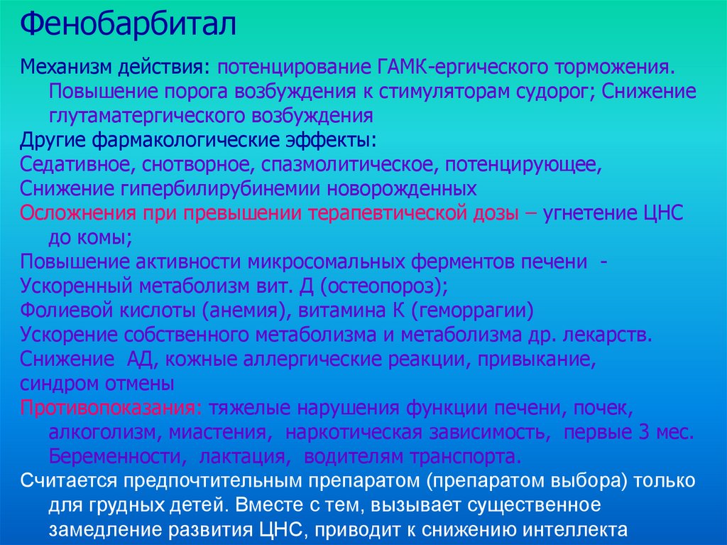 ФенобарбиталМеханизм действия: потенцирование ГАМК-ергического торможения.