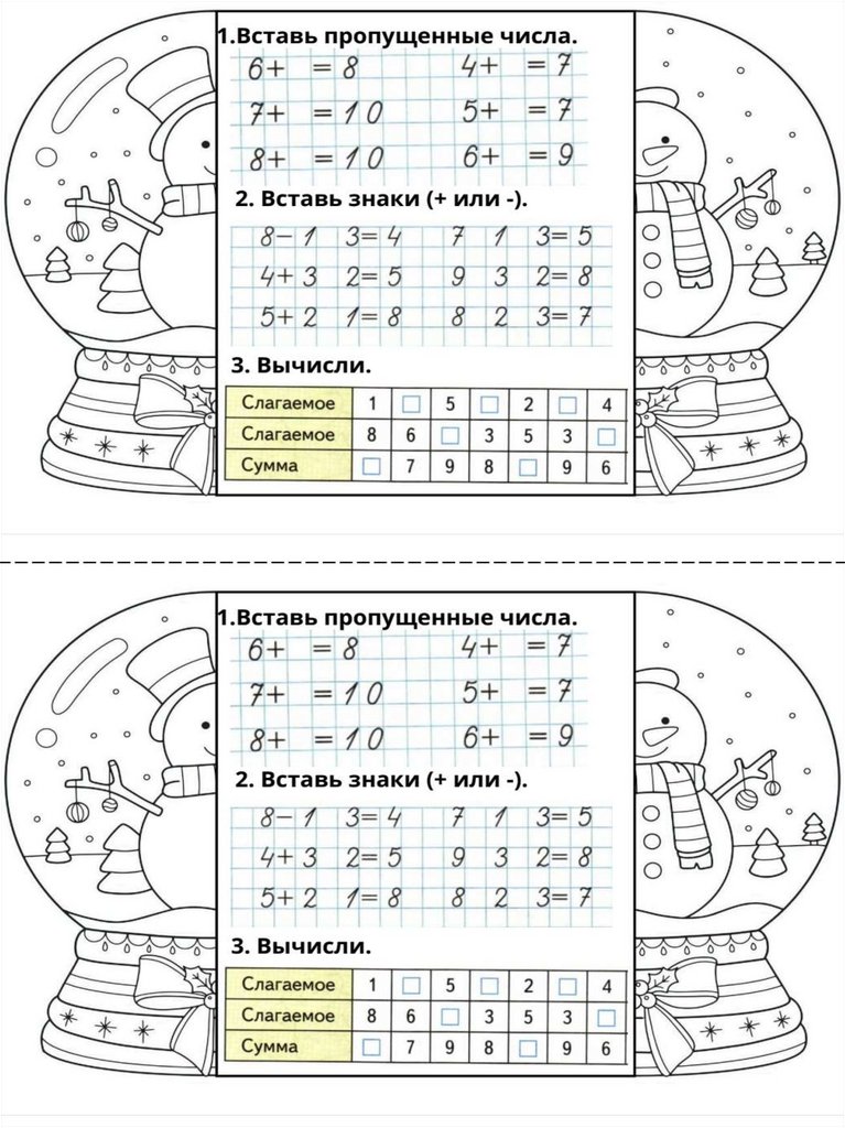 Карточки по математике для повторения (1 класс)