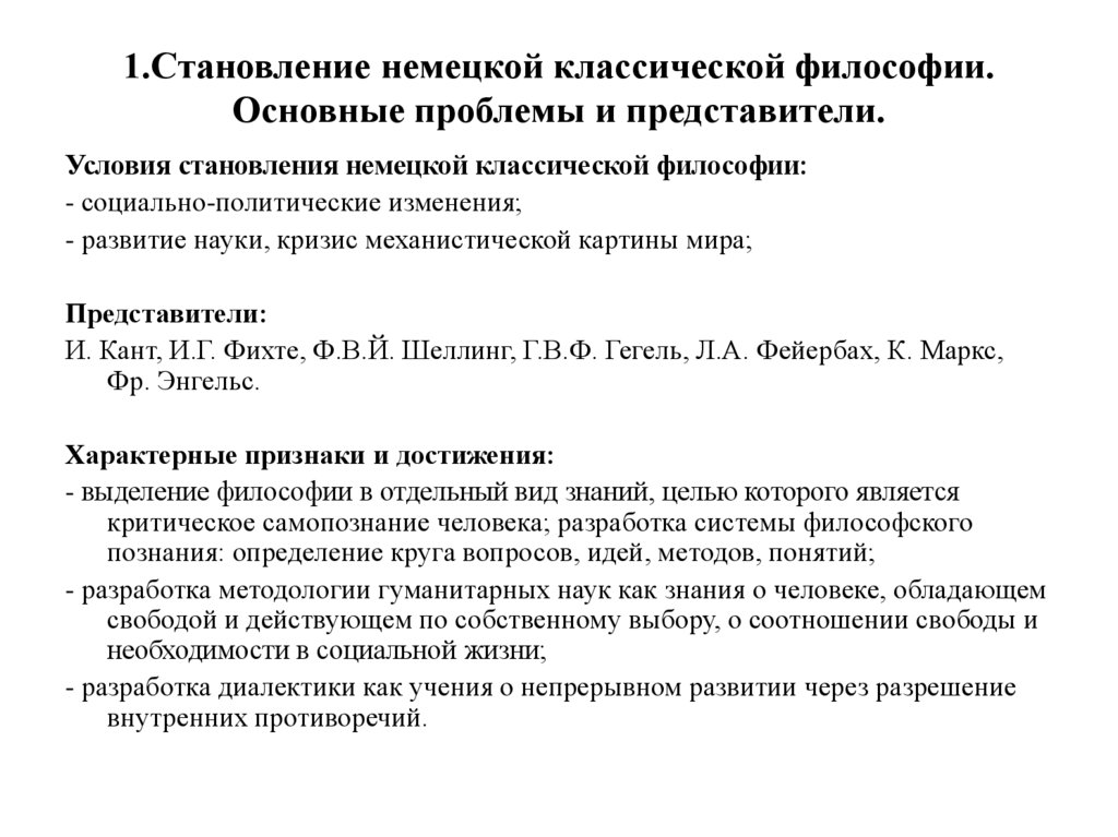 1.Становление немецкой классической философии.Основные проблемы и представители.