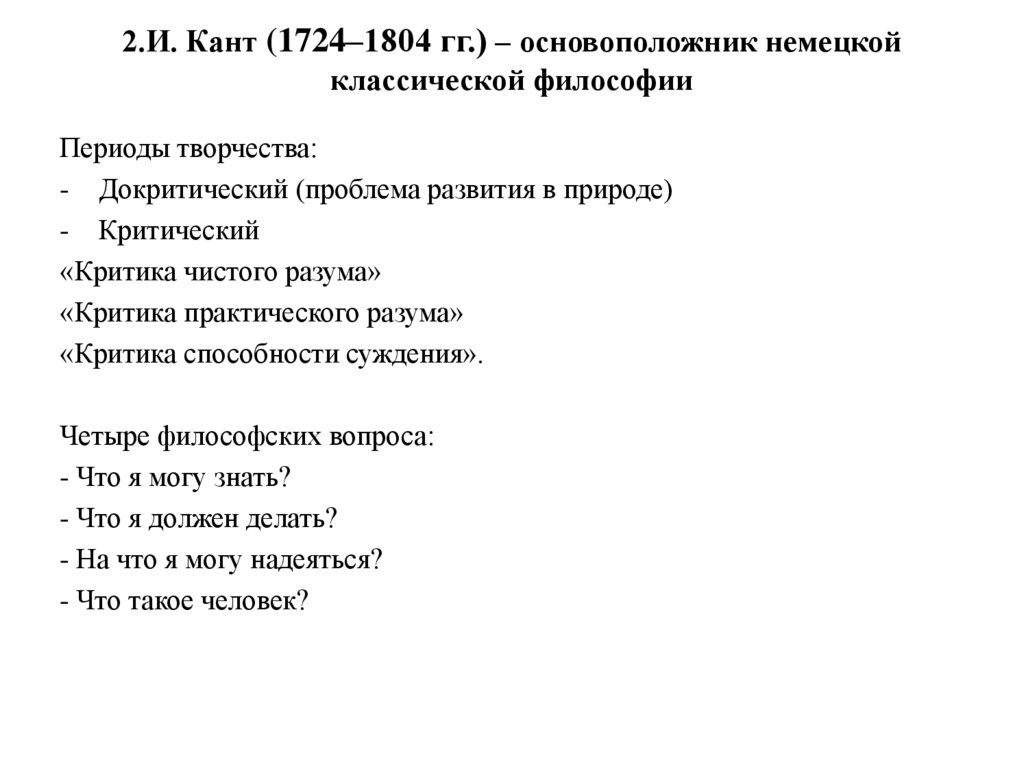 2.И. Кант (1724–1804 гг.) – основоположник немецкойклассической философии