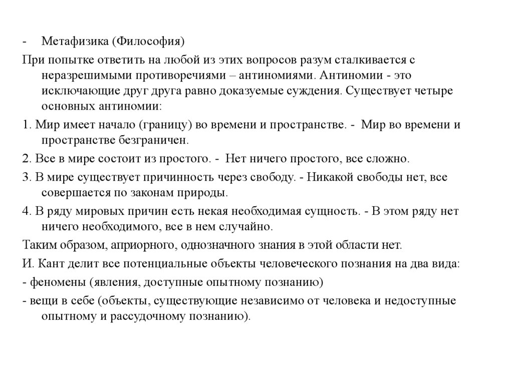 - Метафизика (Философия)При попытке ответить на любой из этих вопросов разум сталкивается с