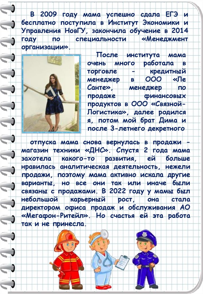 В 2009 году мама успешно сдала ЕГЭ ибесплатно поступила в Институт Экономики и