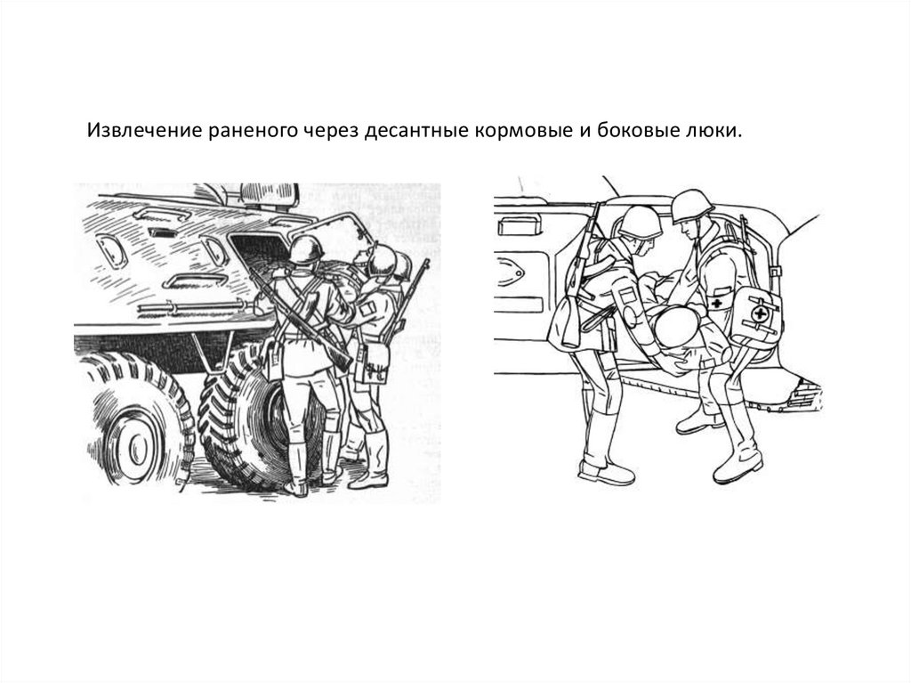 Извлечение раненого через десантные кормовые и боковые люки.17.