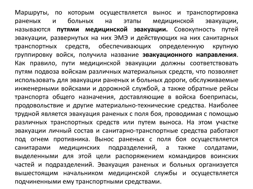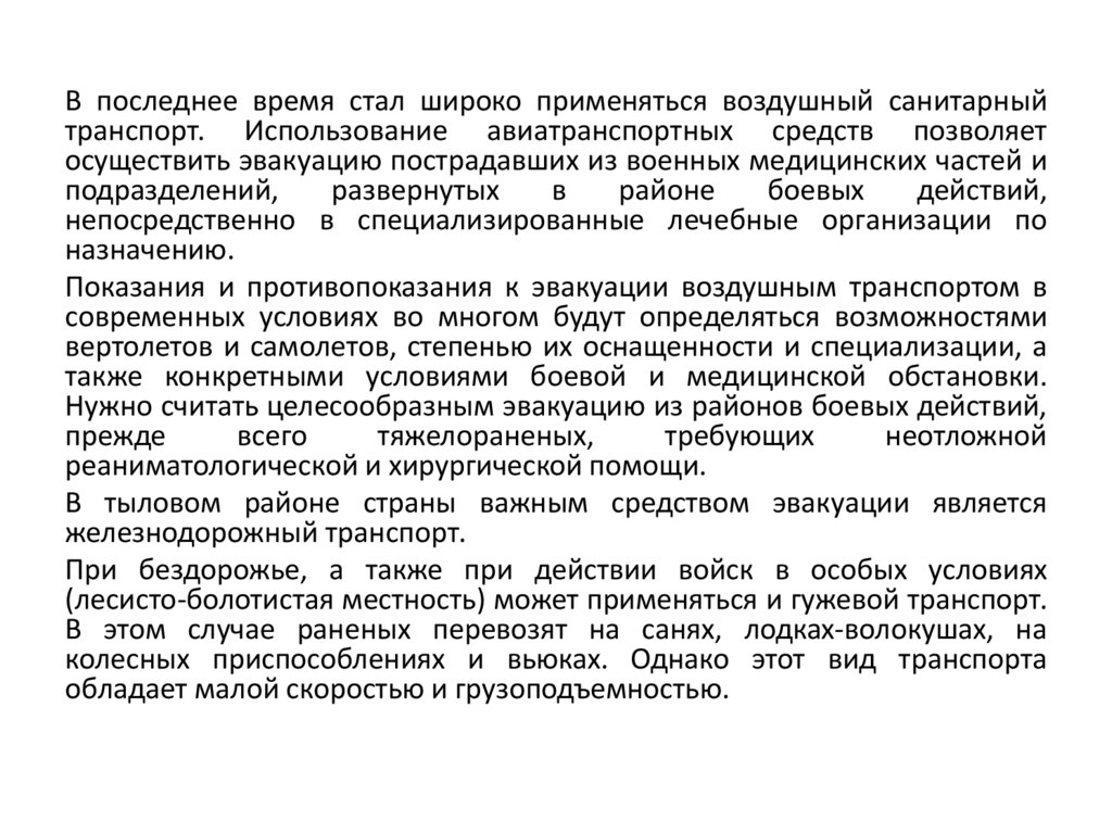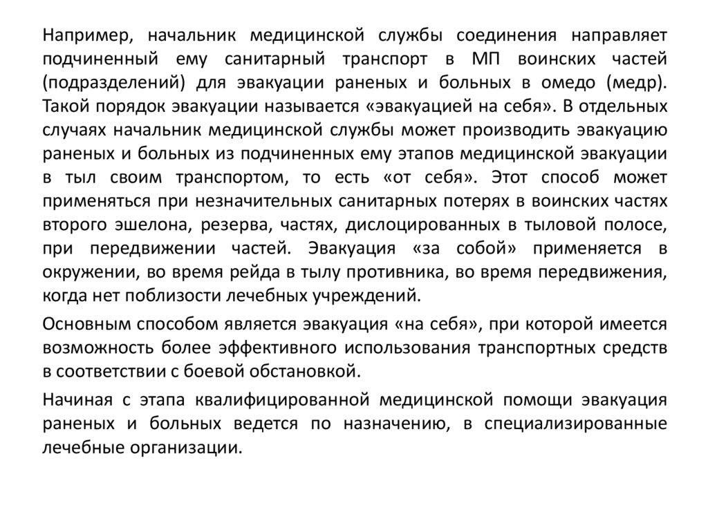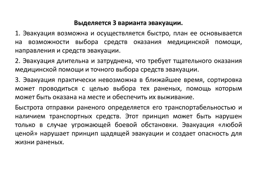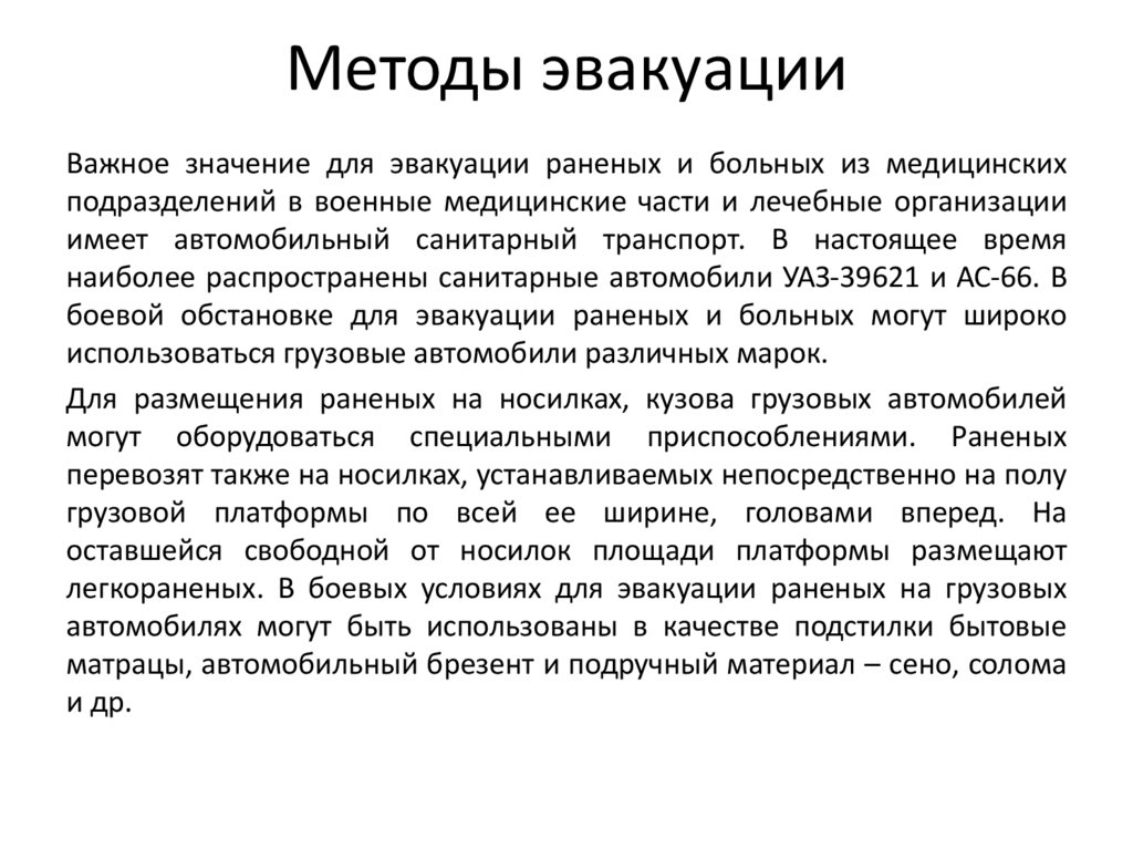 Методы эвакуацииВажное значение для эвакуации раненых и больных из медицинских