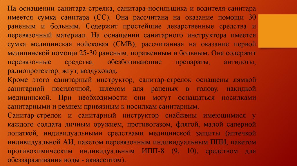 Санитар-стрелок и санитарный инструктор снабжены имеющимися у