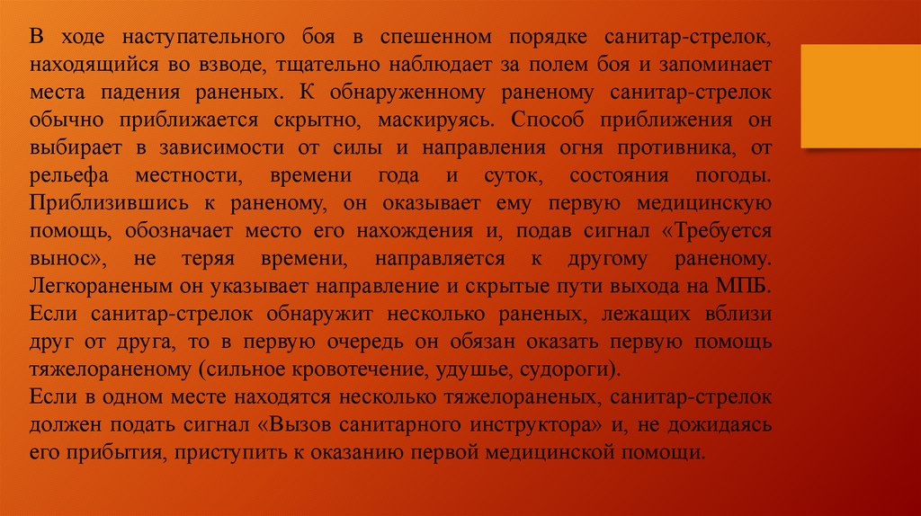 места падения раненых. К обнаруженному раненому санитар-стрелок