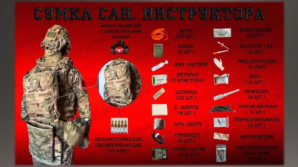 Кроме этого санитарный инструктор, санитар-стрелок оснащены лямкой санитарной носилочной, шлемом для