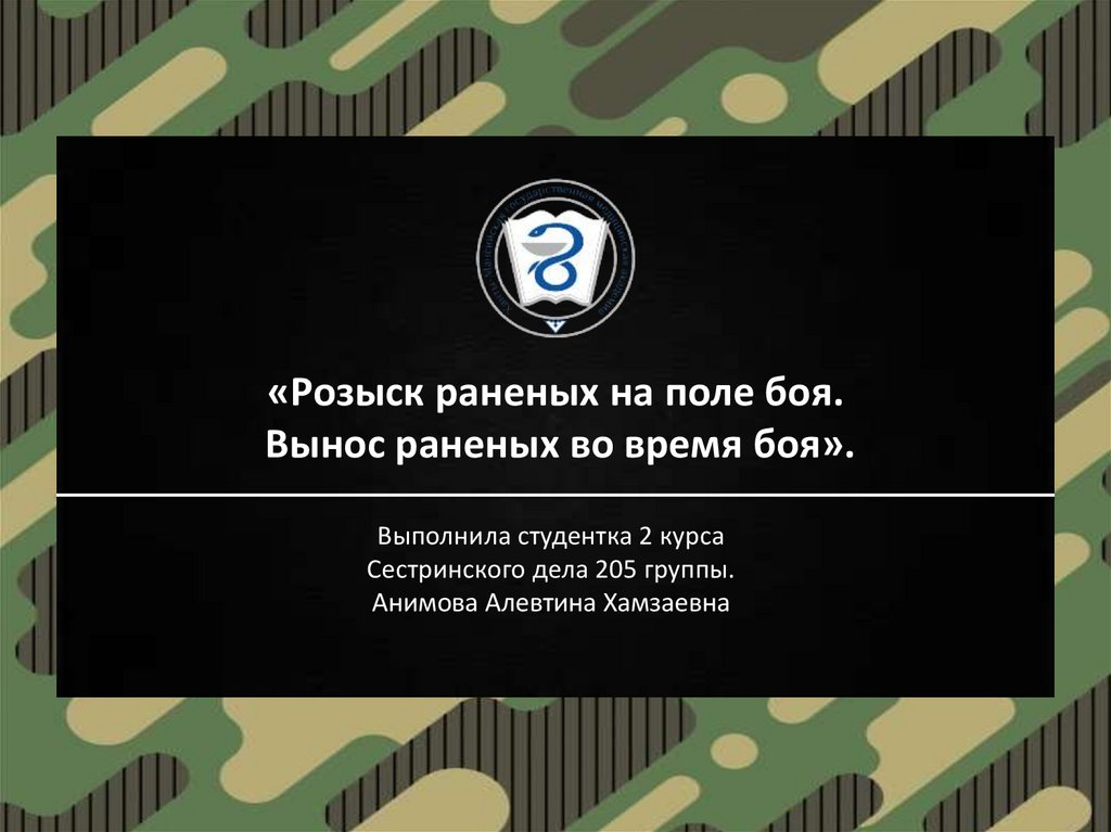 «Розыск раненых на поле боя.Вынос раненых во время боя».