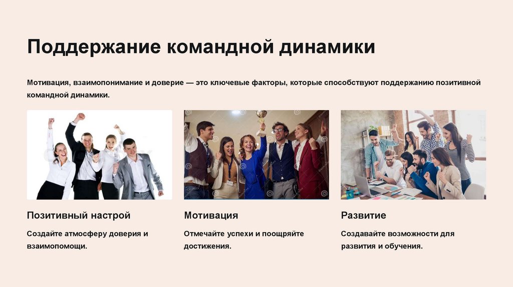 Поддержание командной динамикиМотивация, взаимопонимание и доверие — это ключевые факторы, которые способствуют поддержанию позитивной