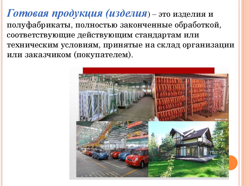 Готовая продукция (изделия) – это изделия иполуфабрикаты, полностью законченные обработкой,