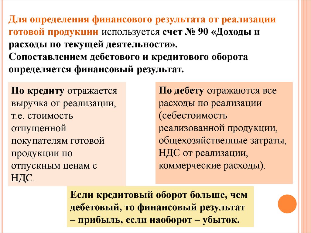 Для определения финансового результата от реализацииготовой продукции используется счет № 90 «Доходы и