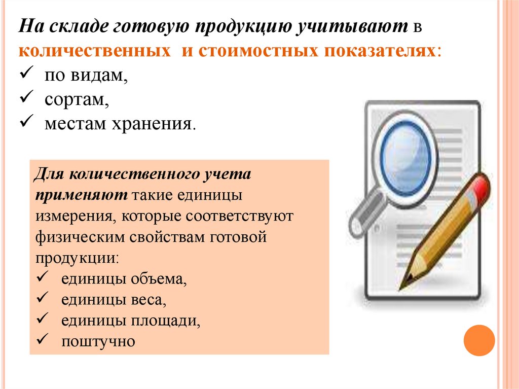 На складе готовую продукцию учитывают вколичественных и стоимостных показателях:
