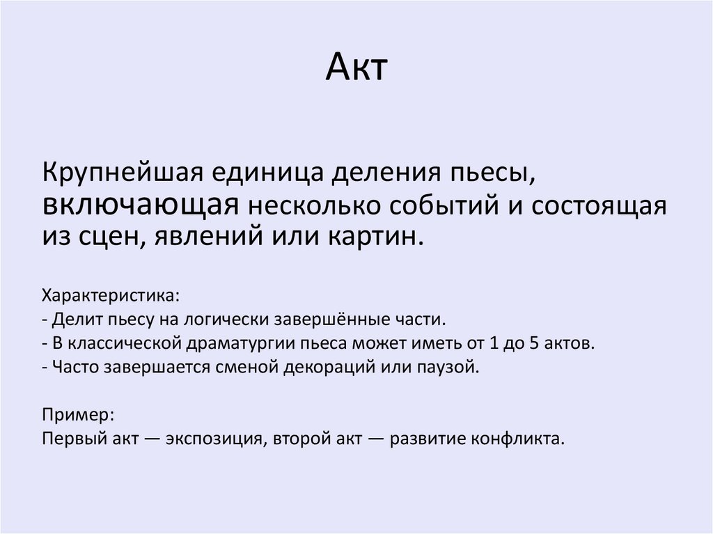 Пьеса, акт, действие