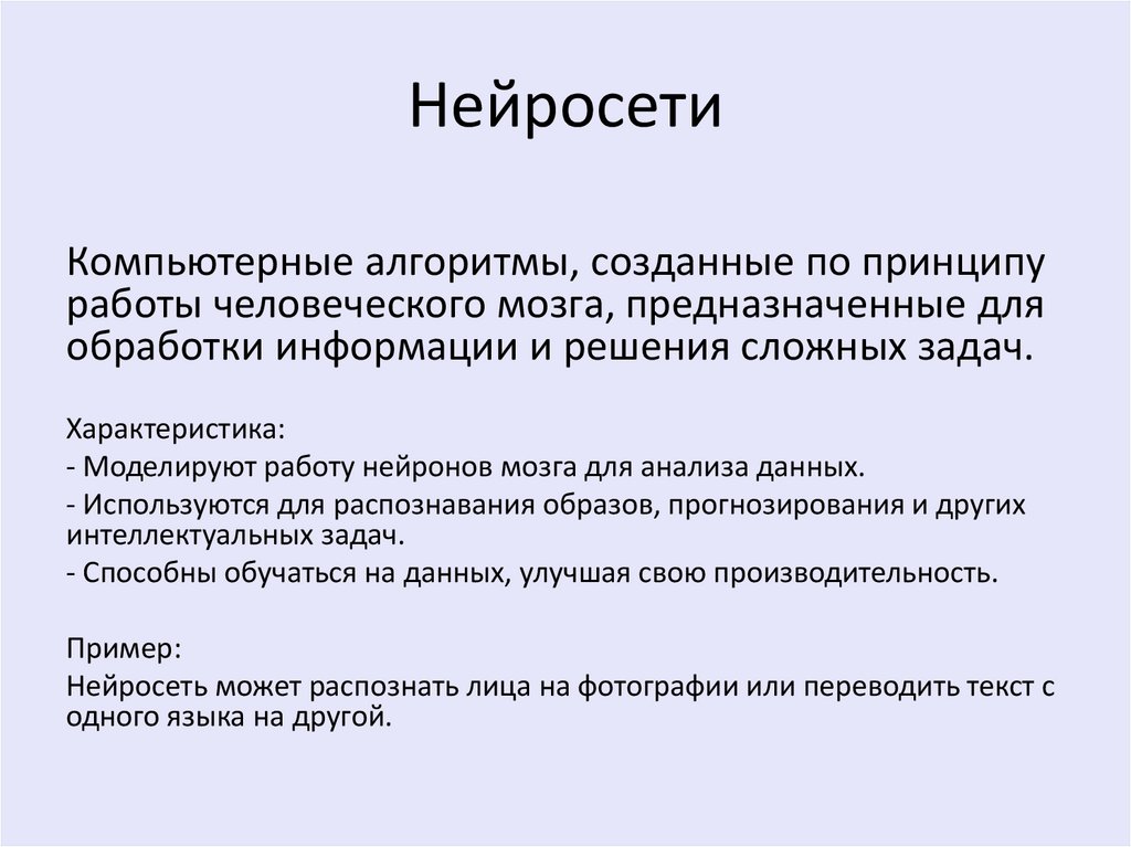 НейросетиКомпьютерные алгоритмы, созданные по принципу