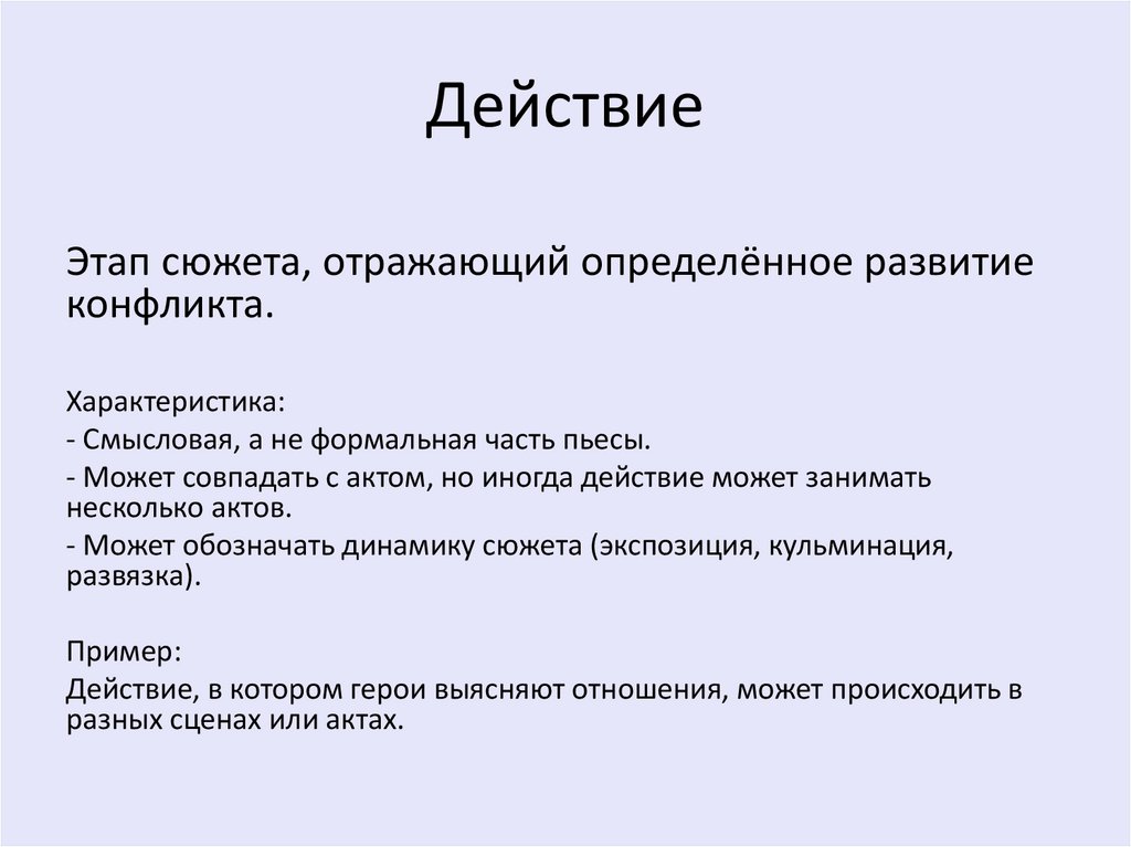 ДействиеЭтап сюжета, отражающий определённое развитие